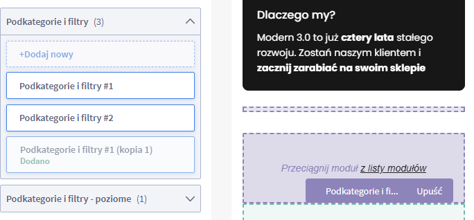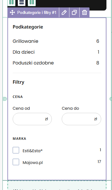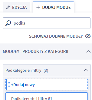 - Znajdź moduł "Podkategorie i filtry" - zazwyczaj jest po lewej stronie