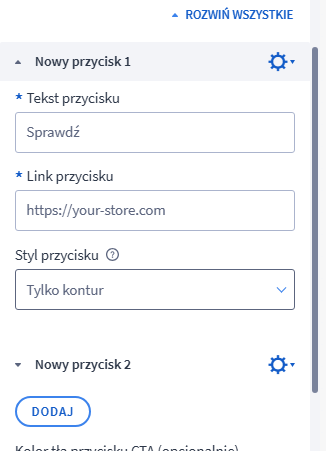 | Kolor tekstu przycisku CTA (opcjonalnie) | Kolor tekstu | Dla kontrastu z tłem |