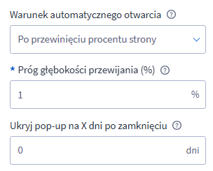 I klientowi NON STOP będą pokazywały się popupy, bo nim zdąży przewinąć ten 1% to od razu okienko się pojawi, popup po zamknięciu na 0 = pokazuje się cały czas i klient dostanie szału po pierwszych 3 zamknięciach :)