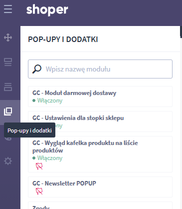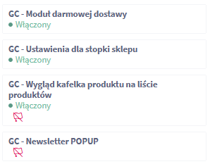 Moduły oznaczone jako GC to moduły stworzone przez nas. Reszta niżej to dodatki i analityka.